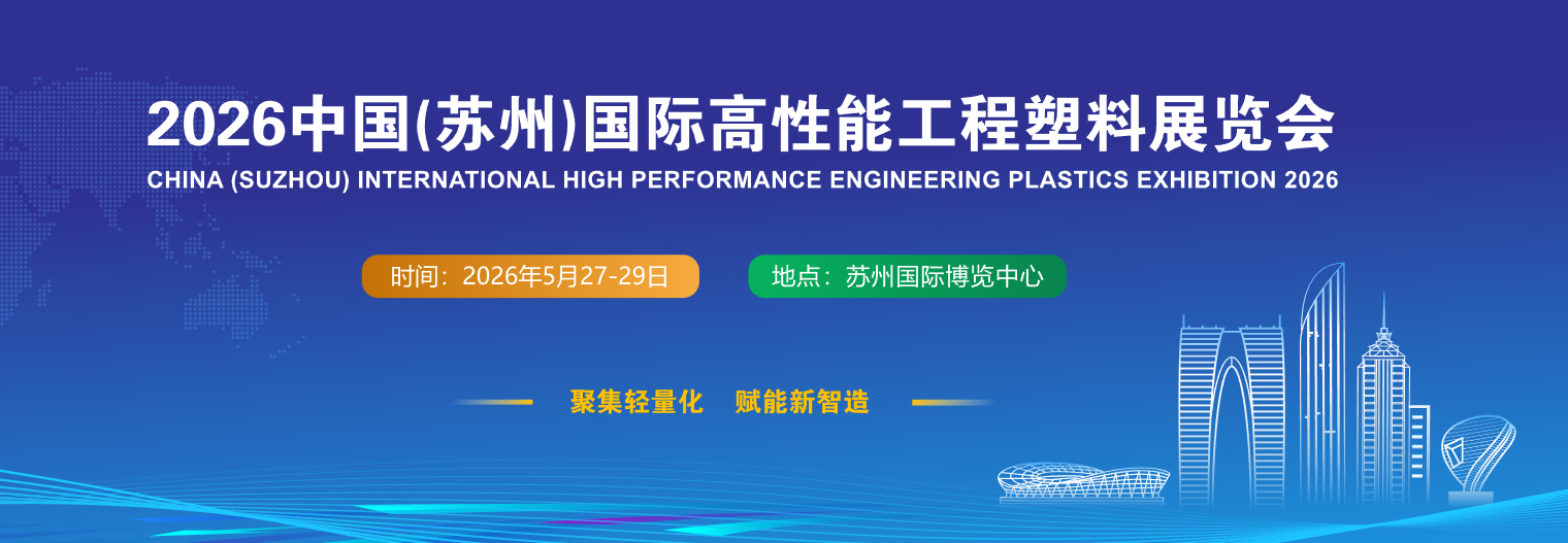 近年来受益于低空经济、新能源、汽车制造、消费电子等行业对高性能材料需求的高速增长,以中国为主要市场的全球特种工程塑料行业市场规预计将达到千亿以上,广泛的热门行业应用与庞大的市场需求,缔造了无限的商业机遇。由江苏大秦国际展览有限公司主办的“CSEPE2026中国(苏州)国际高性能工程塑料展览会”将于2026年5月27-29日在“全球智造之城”苏州隆重举办,展会以“聚焦轻量化 赋能新智造”为主题,旨在加强高性能工程塑料产业全链协同、整合优质资源、提升行业凝聚力。本届展会将重点邀请高性能工程塑料全产业链近500家核心品牌厂商参展,将重点邀约新材料、新能源、机器人、无人机、家电、消费电子、汽车制造、航空/航天、医疗器械、机车/舰船、电工电气等领域的近20,000名专业观众与行业买家莅临现场参观采购。展会“立足长三角、打造风向标”,国内外领先品牌齐聚苏州,共襄全球高性能工程塑料行业盛会!